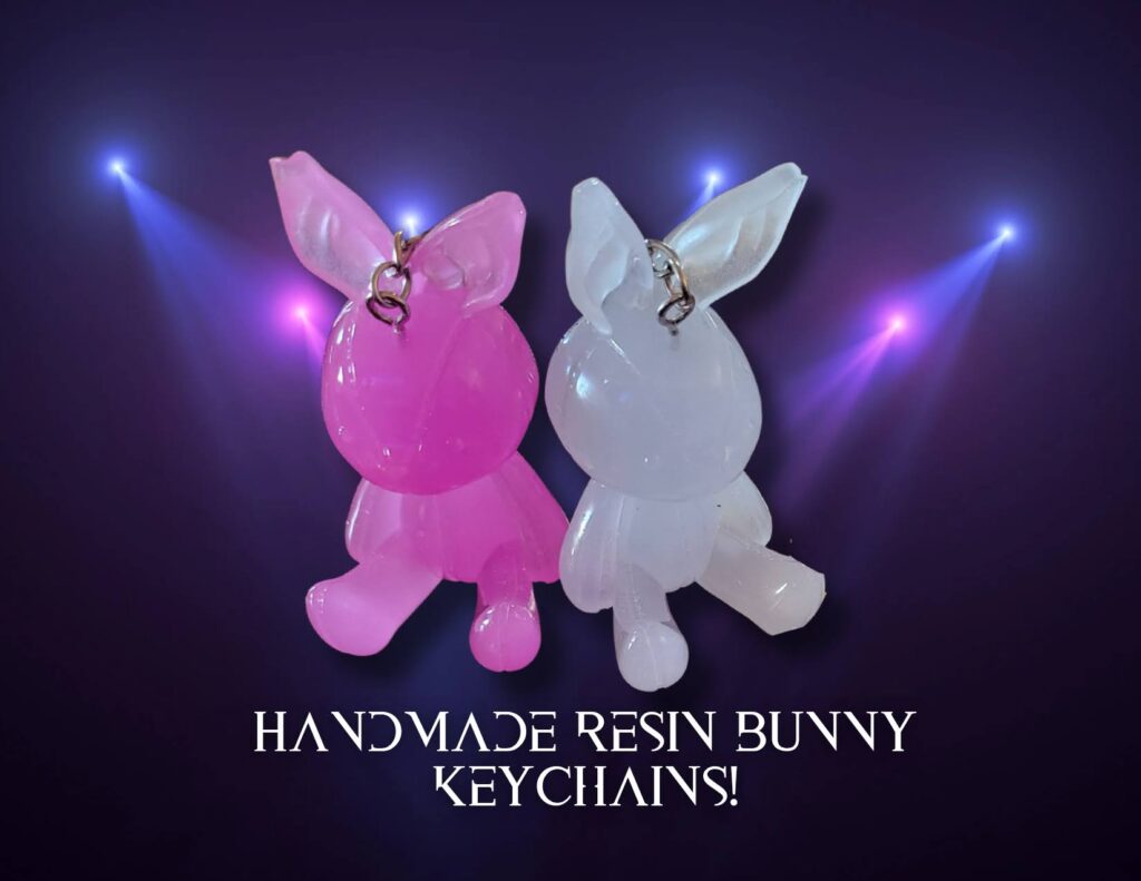 Handmade resin bunny keychains – made by the author!